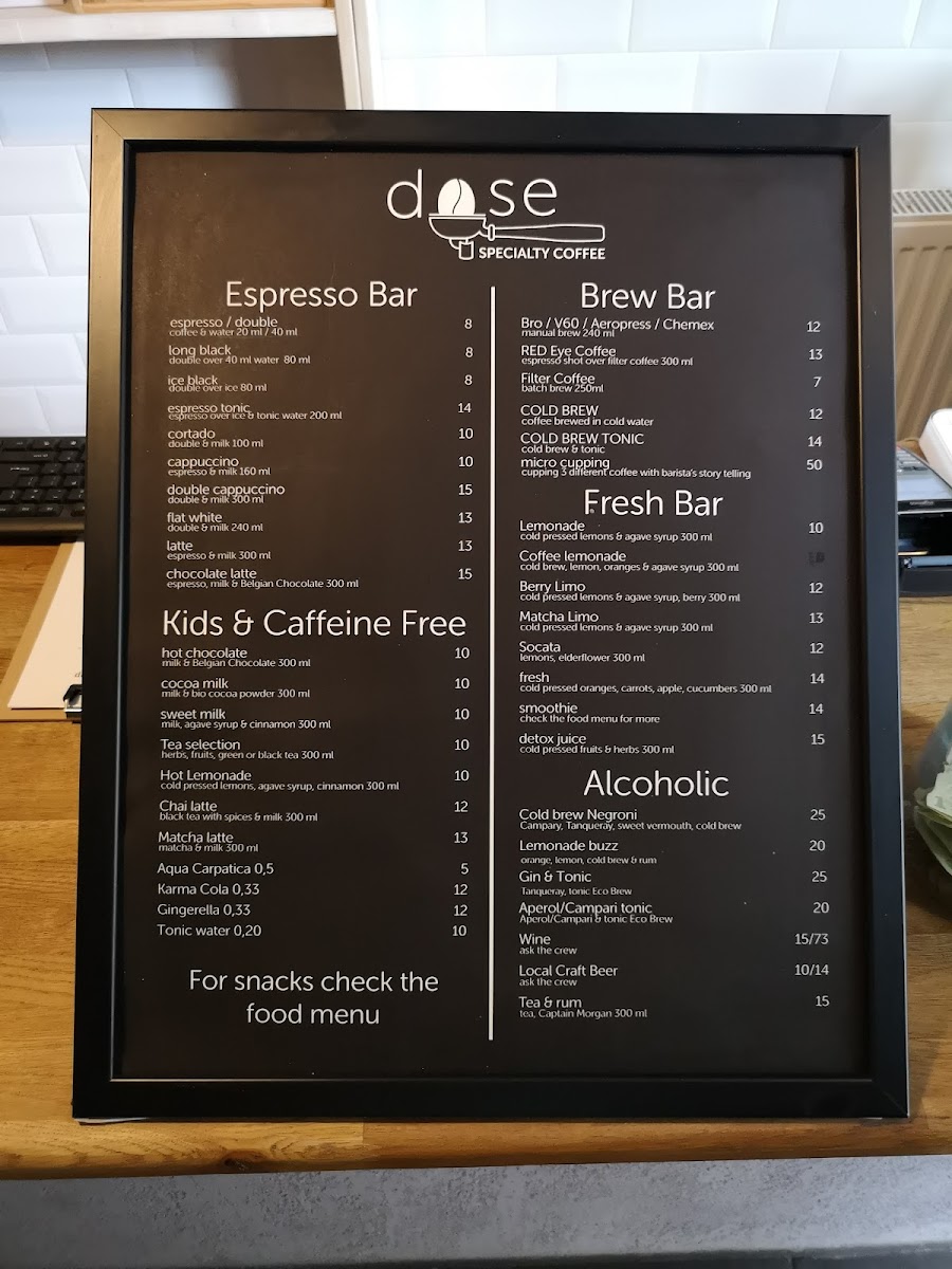 Dose Specialty Coffee Menu